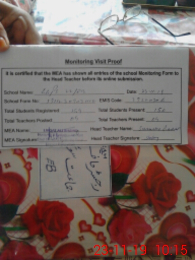 | Certified that this School was Inspected by the Undersigned MEA/DMO Today and the Information Stated Above is as Per Record. | |||||