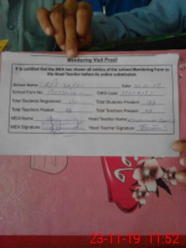 | Certified that this School was Inspected by the Undersigned MEA/DMO Today and the Information Stated Above is as Per Record. | |||||