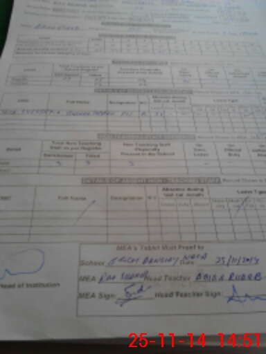 | Attendance Register | Head Teacher | MEA with School | Visit Proof |