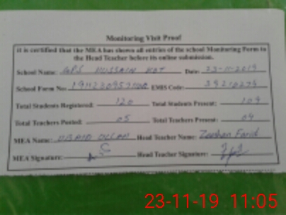 | EMIS Code: 39210274 | Name of School: GPS HUSSAIN KOT | |||