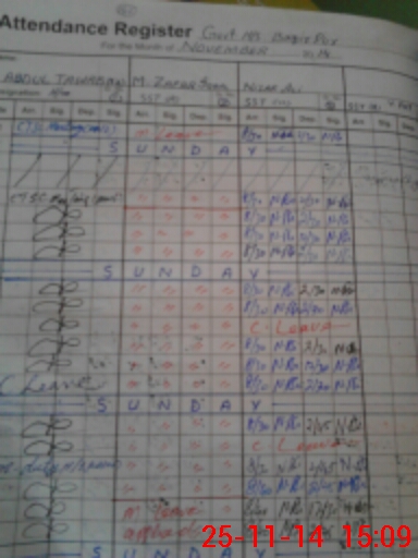| CNIC | Full Name | Designation | R/C | Absence During Last Calender Month |