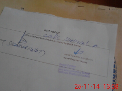 | Attendance Register | Head Teacher | MEA with School | Visit Proof |