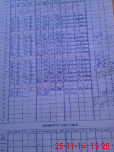 | CNIC | Full Name | Designation | R/C | Absence During Last Calender Month |