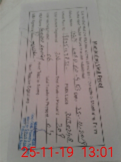 | Monitoring Date: 25-11-2019 | Start Time: 25-11-2019 12:38 PM | End Time: 25-11-2019 01:01 PM | Name of MEA: Pe**** Ak**** BN**** 12 | |
