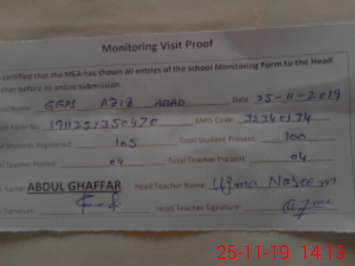 | EMIS Code: 32340174 | Name of School: GGPS AZIZ ABAD | |||