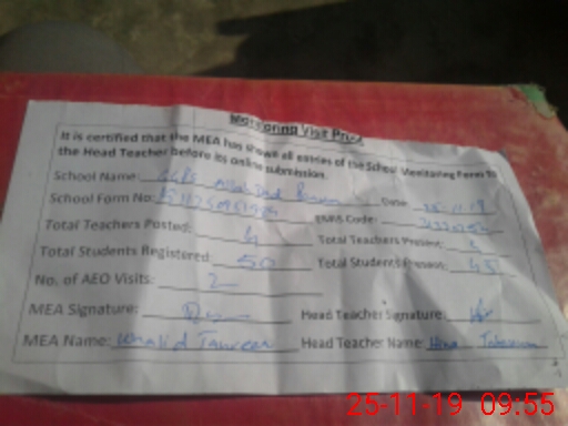 | Attendance Register | Head Teacher | MEA with School | Visit Proof |