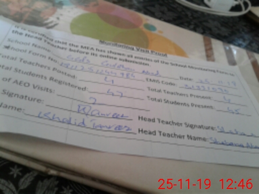 | Attendance Register | Head Teacher | MEA with School | Visit Proof |