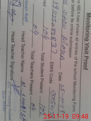 | Attendance Register | Head Teacher | MEA with School | Visit Proof |