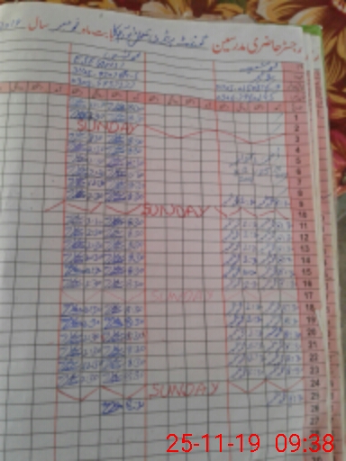 | CNIC | Full Name | Designation | R/C | Absence During Last Calender Month |