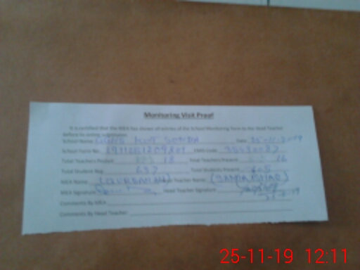 | Attendance Register | Head Teacher | MEA with School | Visit Proof |