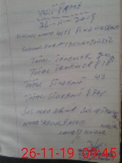 | No. of Students Present - Male | 21 | 0 | 52 | 36 | 26 | 30 | 35 | 27 | 49 | 30 | 15 | 26 | 22 | 369 | ||