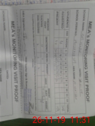 | Attendance Register | Head Teacher | MEA with School | Visit Proof |