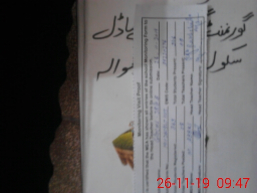 | School Visited by School Health & Nutrition Supervisor (No. of Visits) | 1 | Name1: | HAFIZ MEHMOOD SAEED | Name2: | NIL |