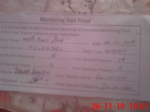 | EMIS Code: 31150317 | Name of School: GGPS BASTI AMIR | |||