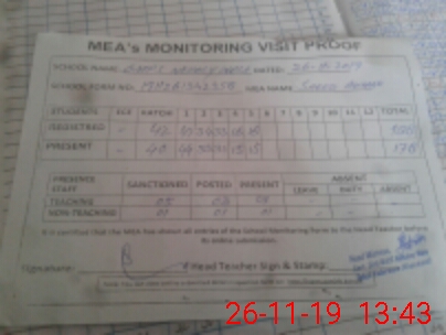 | Certified that this School was Inspected by the Undersigned MEA/DMO Today and the Information Stated Above is as Per Record. | |||||