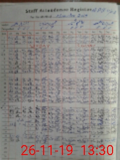 | CNIC | Full Name | Designation | R/C | Absence During Last Calender Month |