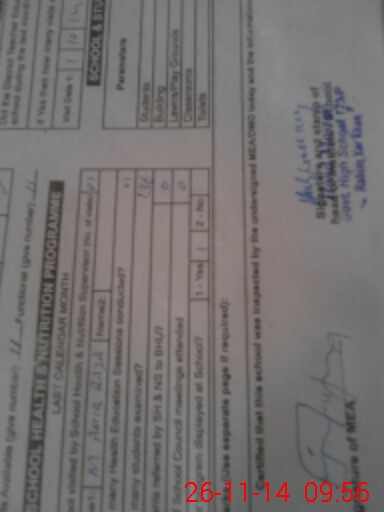| School Visited by School Health & Nutrition Supervisor (No. of Visits) | 1 | Name1: | M Aamir | Name2: | |