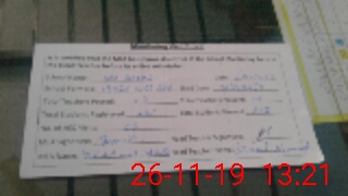 | Monitoring Date: 26-11-2019 | Start Time: 26-11-2019 12:43 PM | End Time: 26-11-2019 01:23 PM | Name of MEA: Mu**** Iz**** UlHa**** | |
