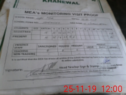 | Certified that this School was Inspected by the Undersigned MEA/DMO Today and the Information Stated Above is as Per Record. | |||||