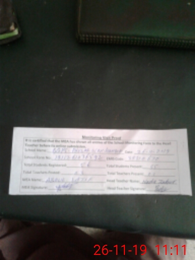 | Attendance Register | Head Teacher | MEA with School | Visit Proof |