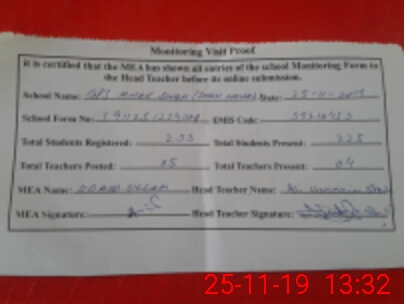 | Certified that this School was Inspected by the Undersigned MEA/DMO Today and the Information Stated Above is as Per Record. | |||||