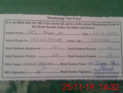 | EMIS Code: 39210450 | Name of School: GPS TALIB ALI P/O 26 S.P | |||