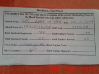 | Certified that this School was Inspected by the Undersigned MEA/DMO Today and the Information Stated Above is as Per Record. | |||||