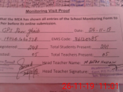 | EMIS Code: 36120085 | Name of School: GPS PIR GHAIB P/O PIR GHAIB MOUZA HILAL WAJEH | |||
