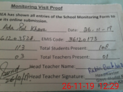 | EMIS Code: 36120173 | Name of School: GMPS ADA PULL KHARA | |||