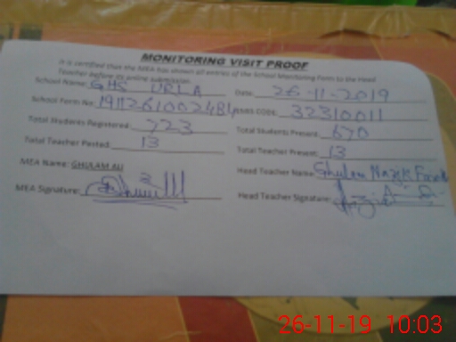 | EMIS Code: 32310011 | Name of School: GHS URLA | |||