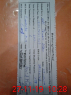 | Monitoring Date: 27-11-2019 | Start Time: 27-11-2019 09:00 AM | End Time: 27-11-2019 10:29 AM | Name of MEA: Ch**** Di**** | |