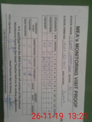 | Attendance Register | Head Teacher | MEA with School | Visit Proof |