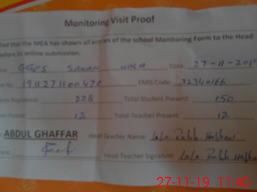 | EMIS Code: 32340166 | Name of School: GGES SAWAN WALA | |||
