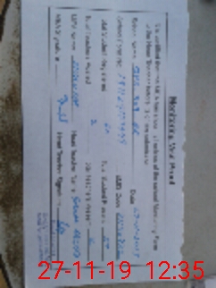 | Monitoring Date: 27-11-2019 | Start Time: 27-11-2019 11:52 AM | End Time: 27-11-2019 12:36 PM | Name of MEA: Mu**** ah**** BN**** 29 | |