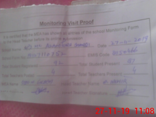 | Attendance Register | Head Teacher | MEA with School | Visit Proof |