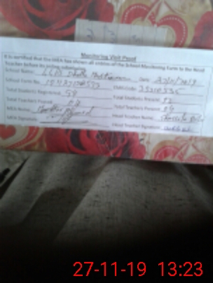 | Attendance Register | Head Teacher | MEA with School | Visit Proof |