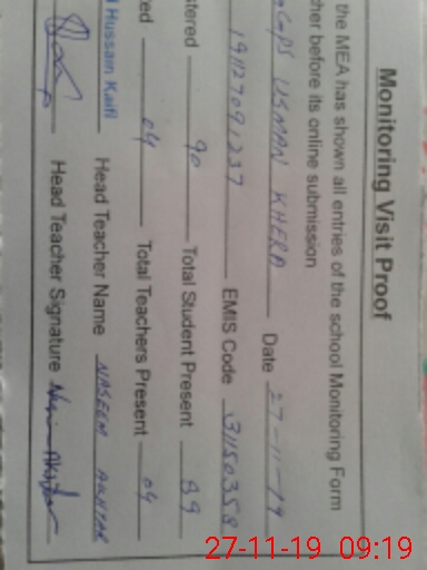 | EMIS Code: 31150358 | Name of School: GGPS USMAN KHARA | |||