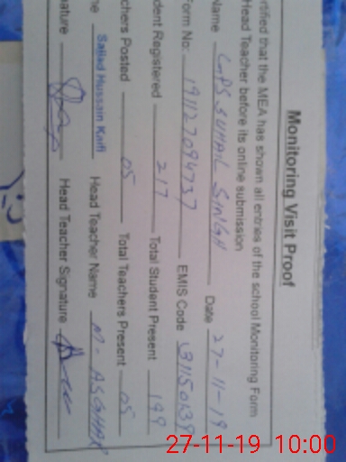 | EMIS Code: 31150139 | Name of School: GPS SUHAIL SINGH | |||
