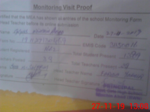 | EMIS Code: 31150016 | Name of School: GGHS MINCHIN ABAD | |||