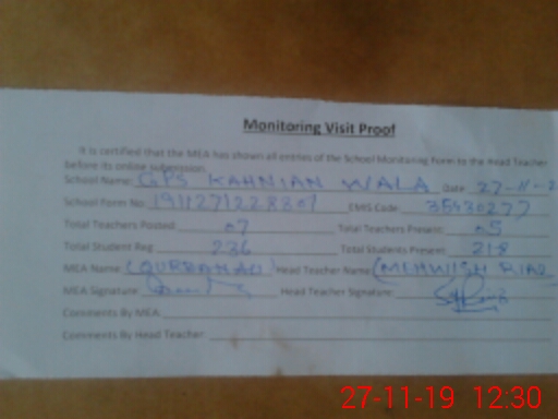 | EMIS Code: 35430277 | Name of School: GPS KAHANIAN WALA | |||