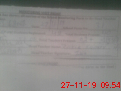 | Attendance Register | Head Teacher | MEA with School | Visit Proof |