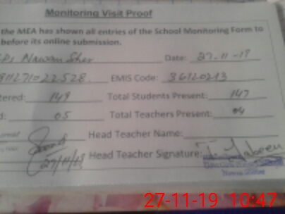 | Attendance Register | Head Teacher | MEA with School | Visit Proof |