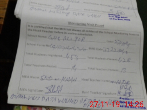 | Attendance Register | Head Teacher | MEA with School | Visit Proof |