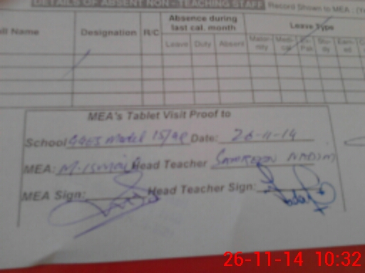 | Attendance Register | Head Teacher | MEA with School | Visit Proof |