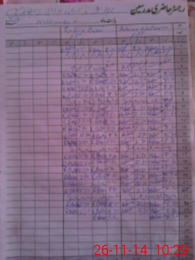 | CNIC | Full Name | Designation | R/C | Absence During Last Calender Month |