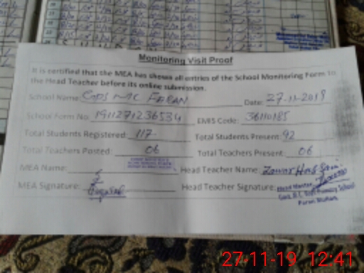 | EMIS Code: 36110185 | Name of School: GPS MC FARAAN NEAR KHONI BURJ MULTAN | |||