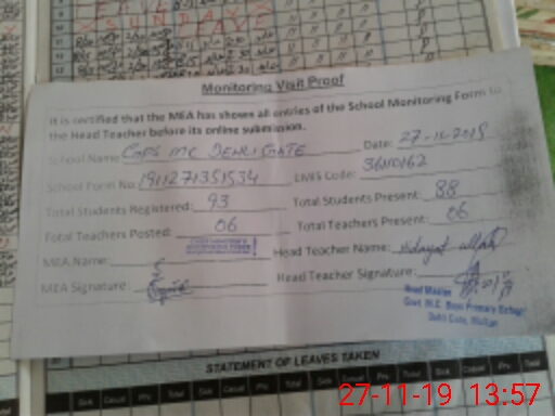 | EMIS Code: 36110162 | Name of School: GPS MC DEHLI GATE MULTAN | |||