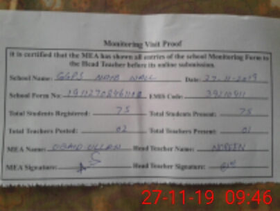 | Attendance Register | Head Teacher | MEA with School | Visit Proof |