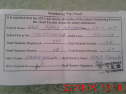 | Attendance Register | Head Teacher | MEA with School | Visit Proof |