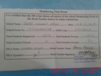 | Certified that this School was Inspected by the Undersigned MEA/DMO Today and the Information Stated Above is as Per Record. | |||||